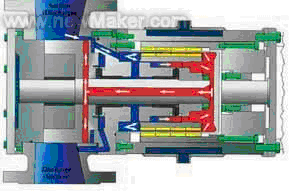 ” 并沒有直接將入口和出口短接。足夠的冷卻液體的產(chǎn)生與進出口壓差,粘度和軸轉(zhuǎn)速無關(guān)。而且,這種系統(tǒng)有一個更重要的獨特的優(yōu)點,那就是該制造商 ROTAN 的磁力驅(qū)動齒輪泵可以正反轉(zhuǎn)而不影響它冷卻系統(tǒng)的工作。因為轉(zhuǎn)向相反,系統(tǒng)中的液體流向也只是簡單的方向相反而已。