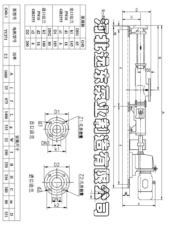 G40-1V單螺桿泵配YCJ71-2.2KW減速機(jī)安裝尺寸圖
