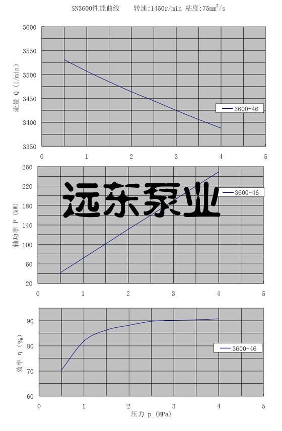 SN3600三螺桿泵(SNH3600三螺桿泵,SNF3600三螺桿泵)轉(zhuǎn)速1450性能曲線圖
